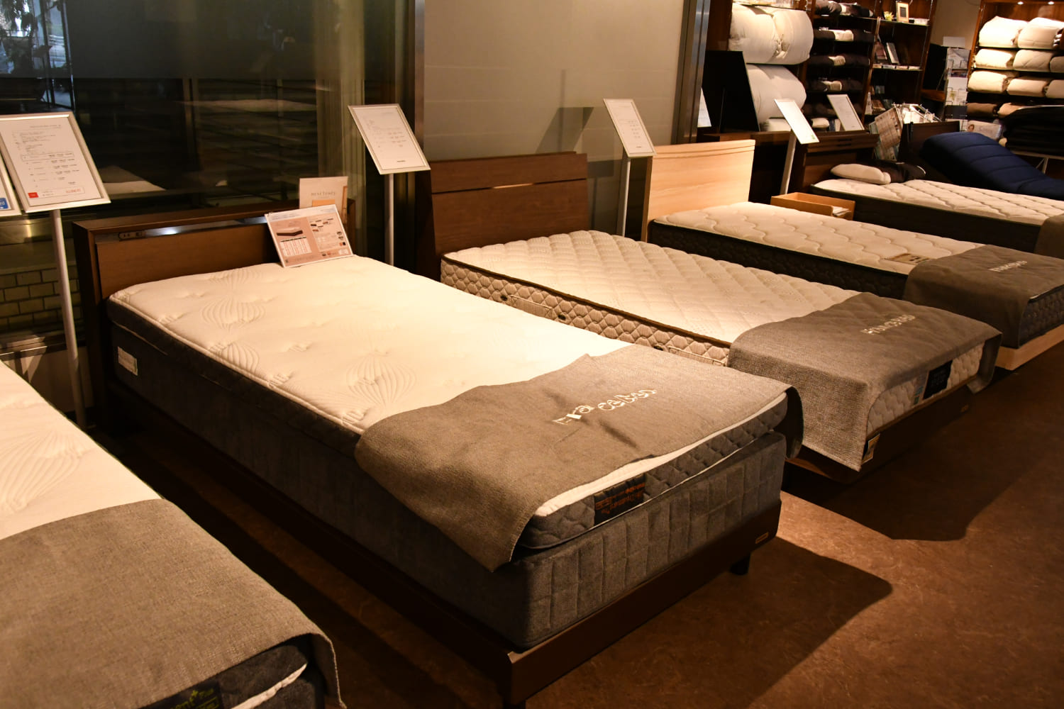 ショールームにお越しになった短い時間で機能や寝心地の違いを実感するのは難しいかもしれませんが、実際の製品に横になったときの感触の明らかな違いは感じていただけるはずです。家具や寝具は決して安い買物ではなく、「体に合わなかったら買い直せば良い」というものでもありません。
