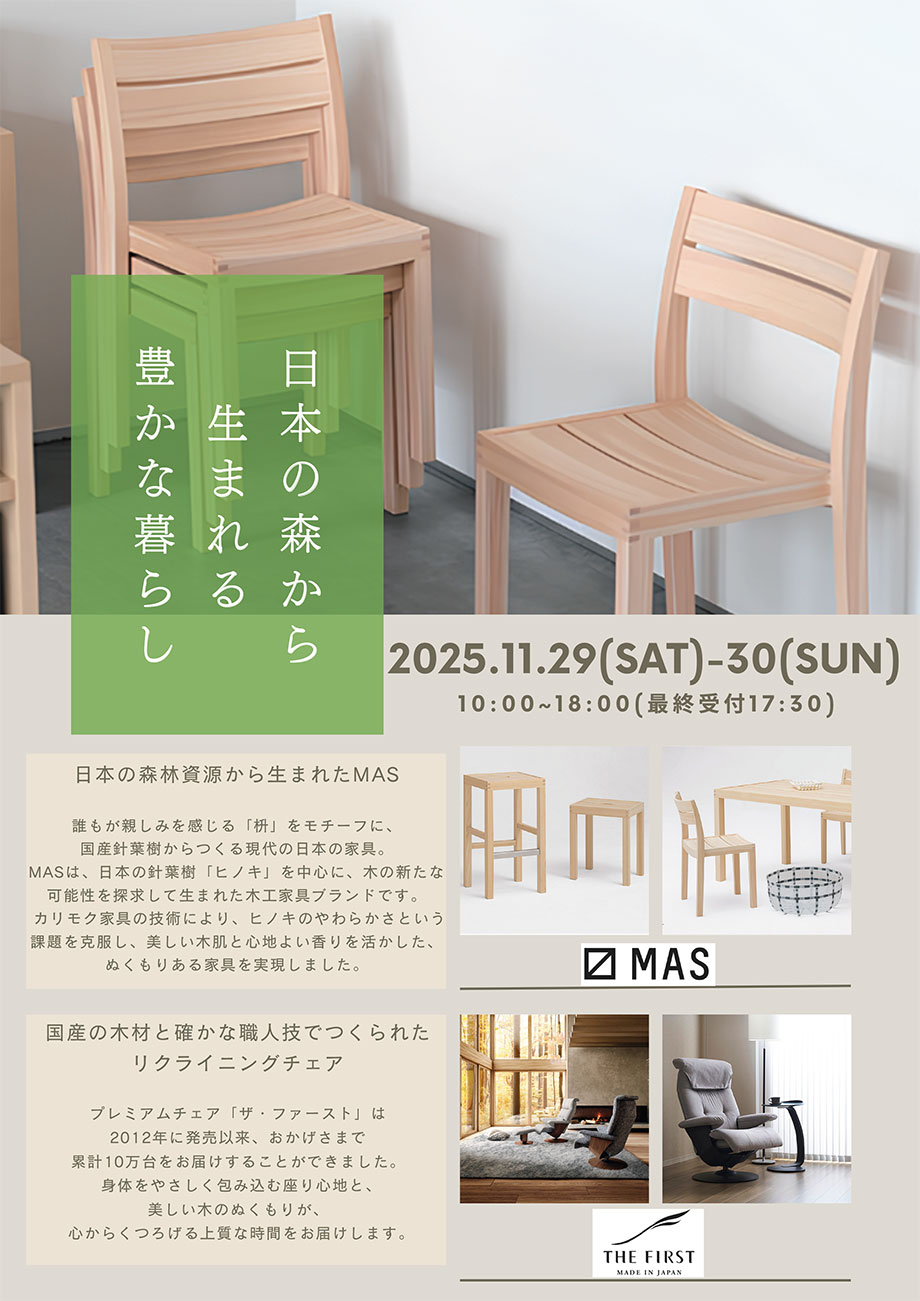 招待状のお申込みはこちらカリモク家具 日本の森から生まれる豊かな暮らしフェアin新横浜 2025年11月29日(土)〜30日(日)