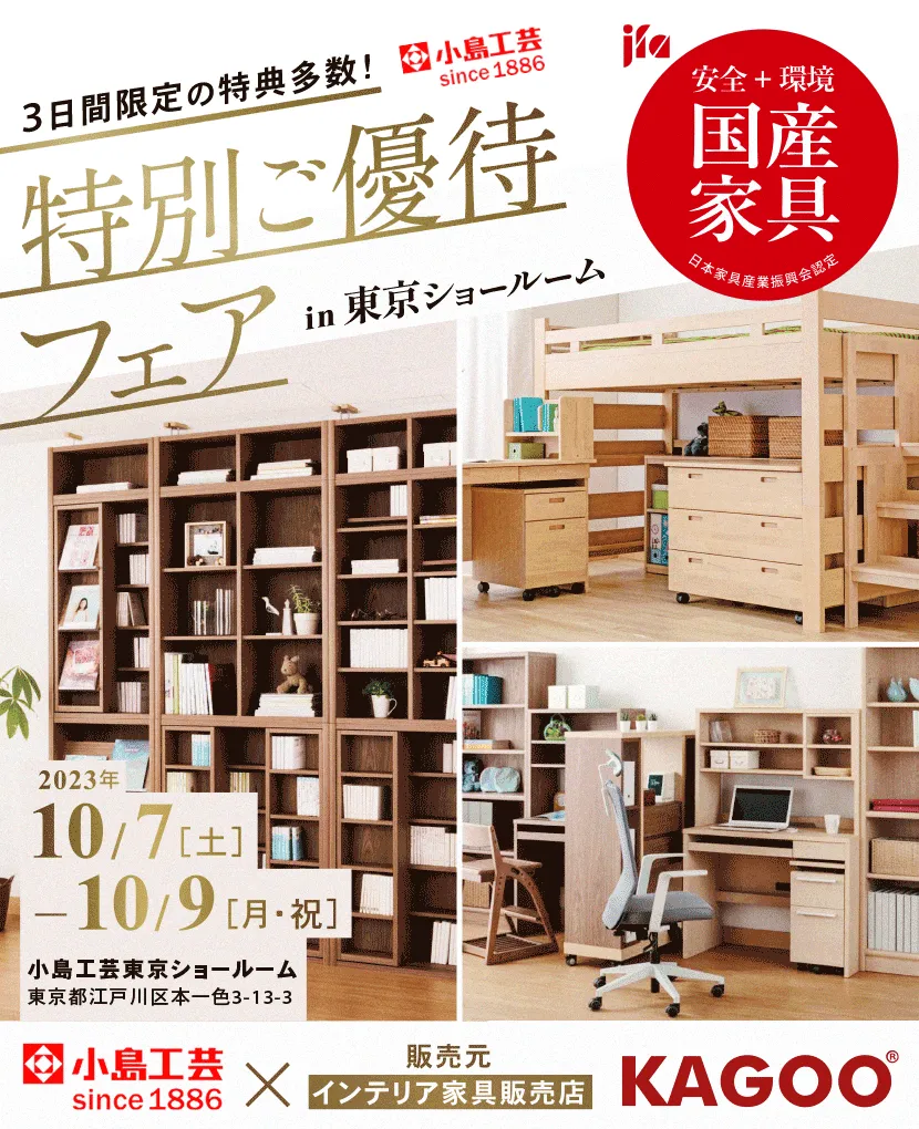 サイズをオーターできる書棚やタブレット学習も視野にいれた学習机、使用感に優れた書斎机をお届けする小島工芸は、新生活を始める方にぴったり!