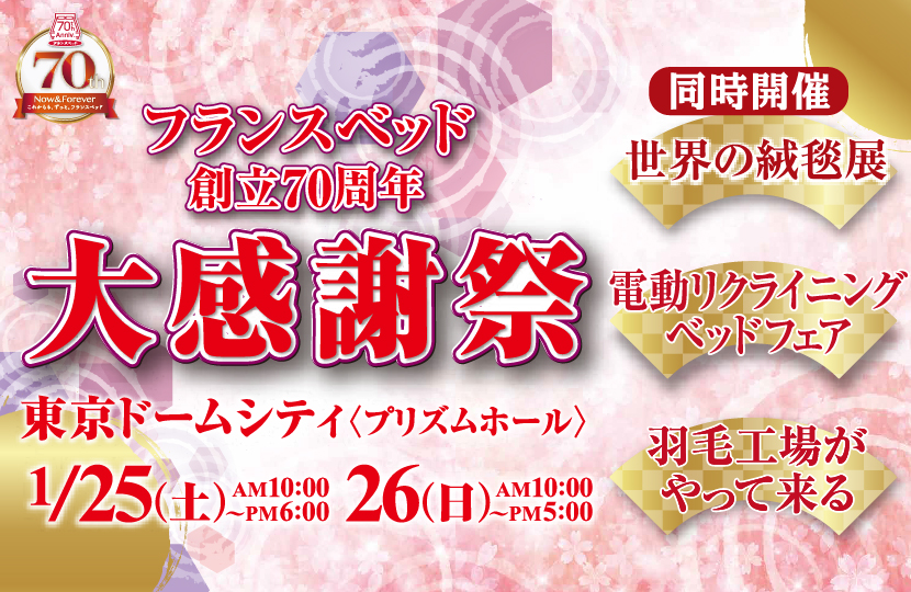 フランスベッド主催の年に1度だけの超大型フェアを、フランスベッド創業70周年を記念して特別開催!